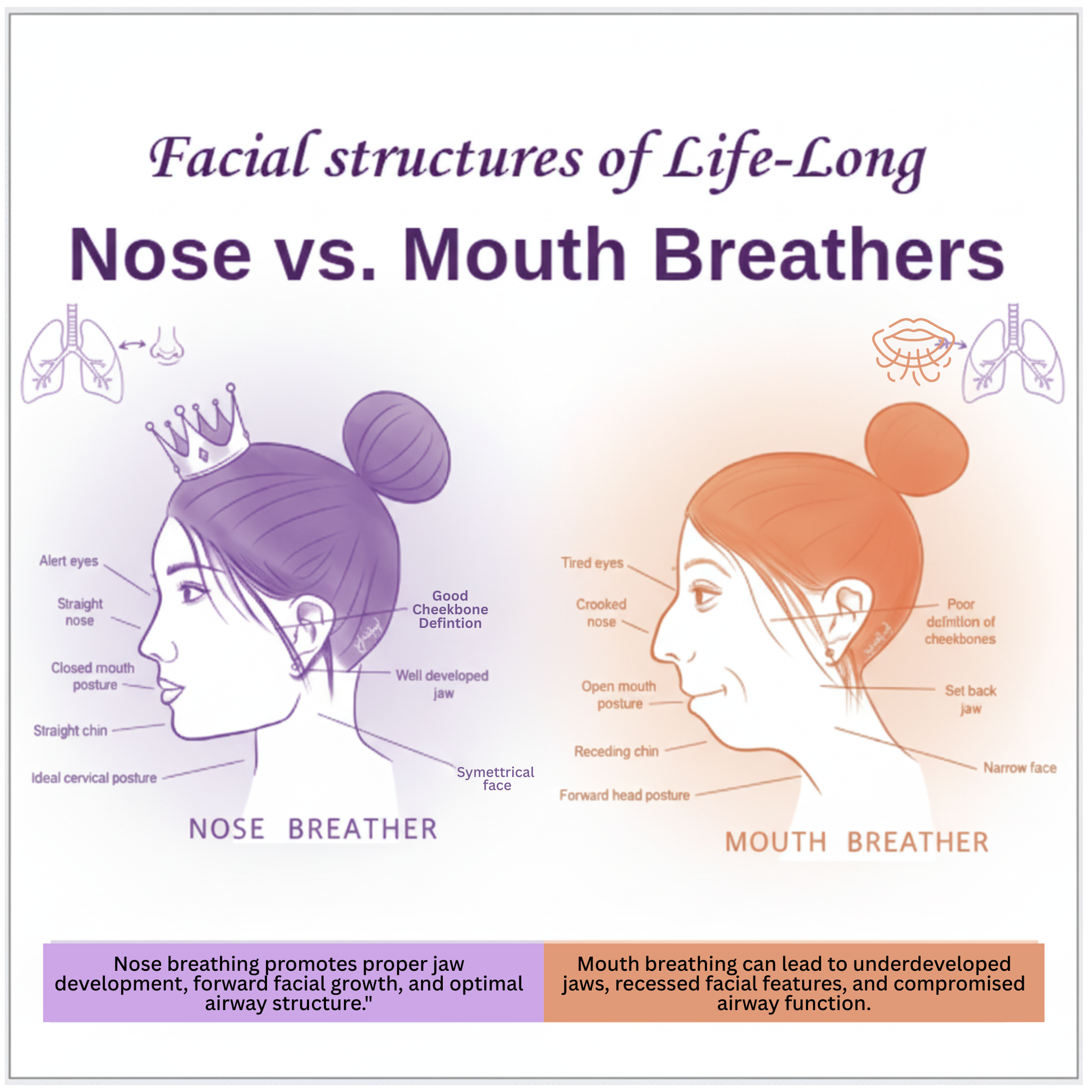 Mouth breathing causes the jaw muscles to relax completely, leading to a softer, less defined appearance. Queen Tape helps maintain proper jaw positioning, supporting muscle tone and gradually training your jawline to appear more lifted and contoured.