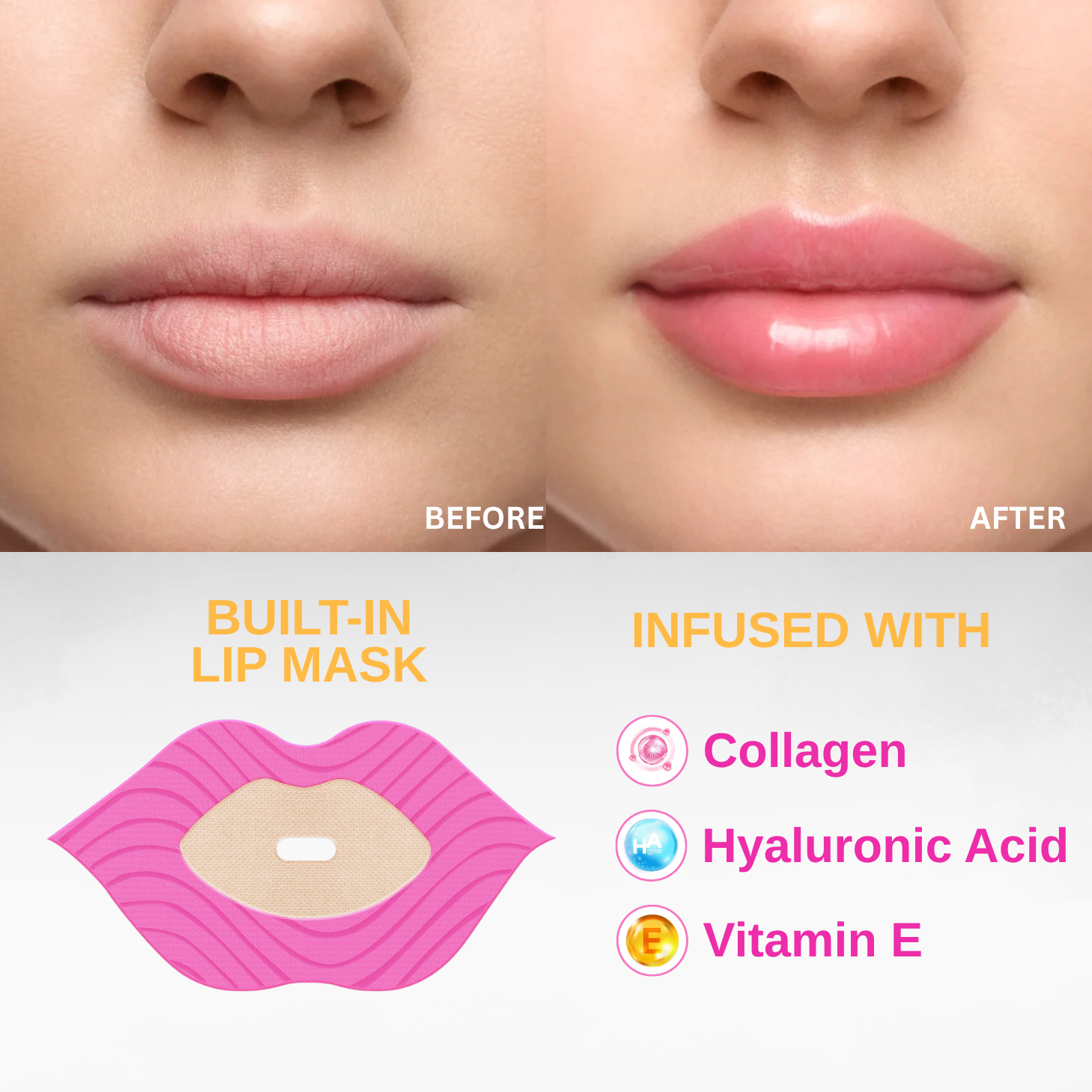 Our hydrating center is infused with a powerhouse trio of premium ingredients: Collagen, Hyaluronic Acid, & Vitamin E work in harmony to plump, hydrate, and moisturize your lips while you sleep, revealing a smoother, more radiant pout by morning.