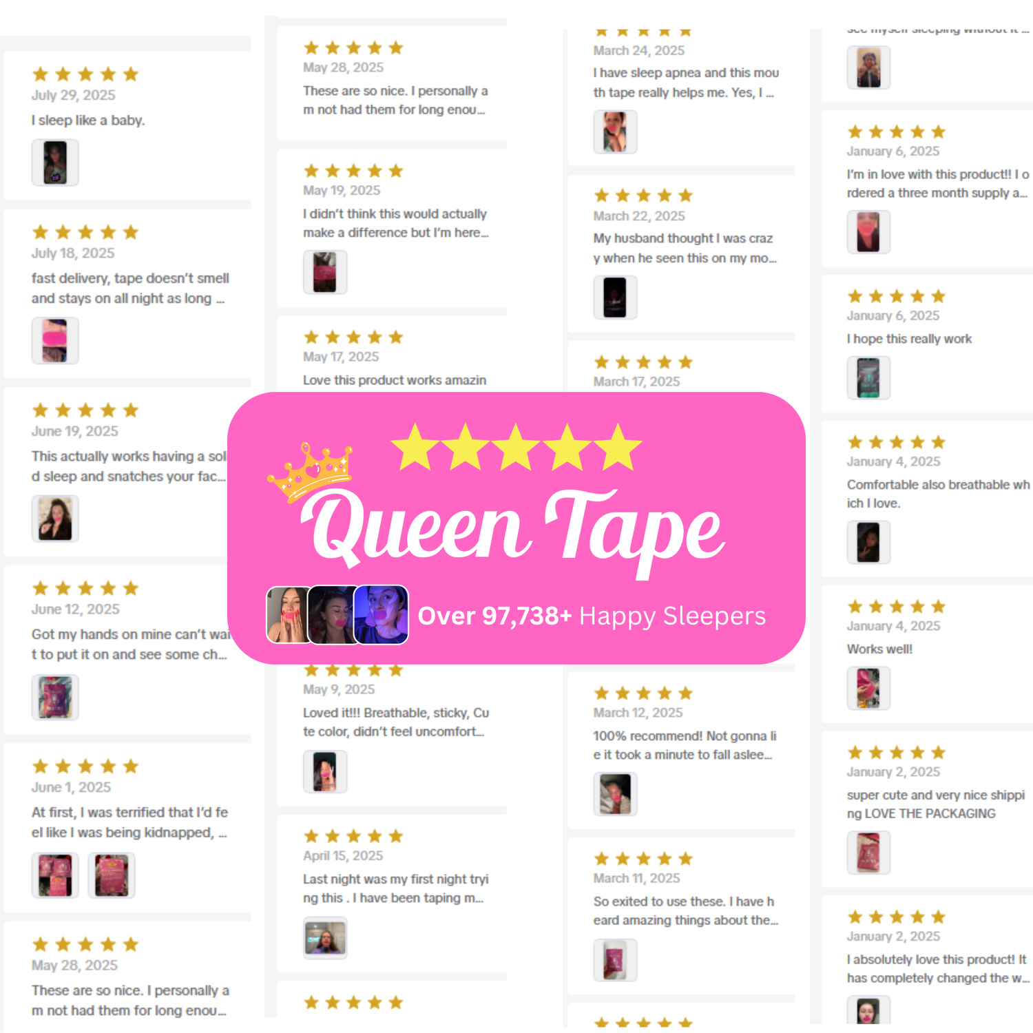 Queen Tape encourages nose breathing, which increases oxygen intake and plunges you into deeper, more restorative REM sleep so you can wake up glowing & refreshed.