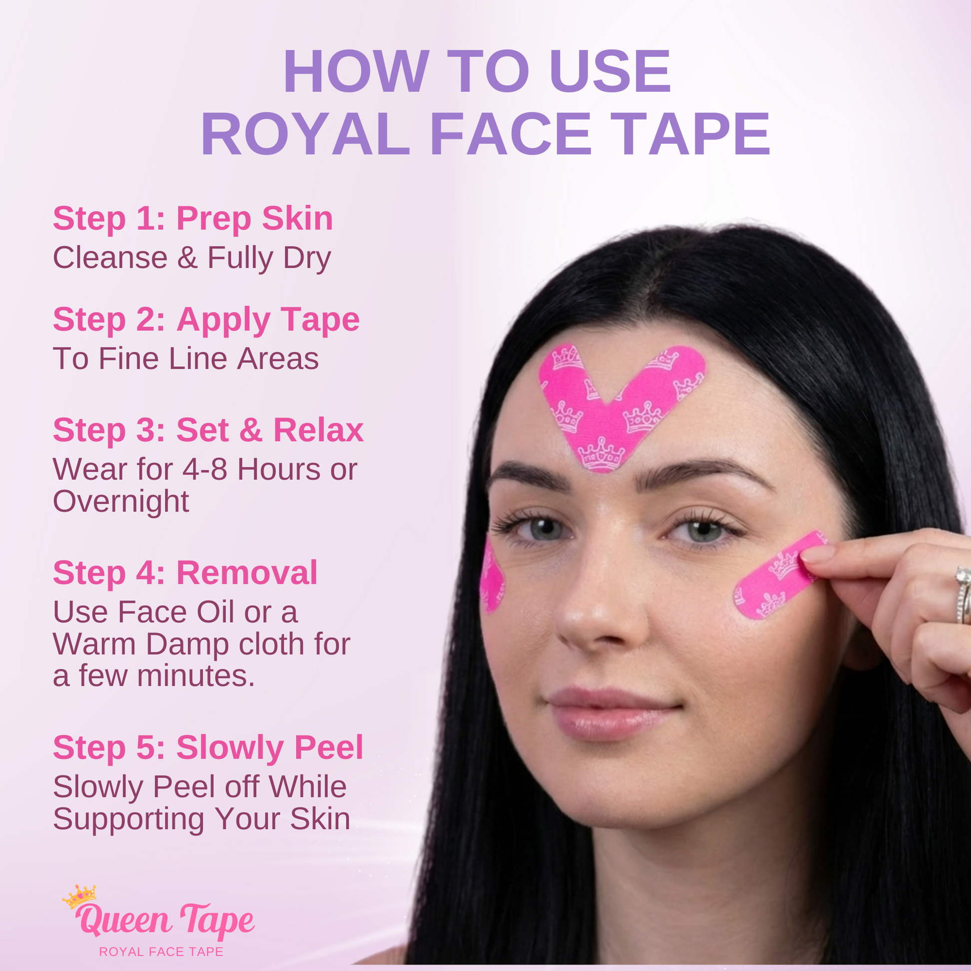 Wake up looking smoother, lifted, and refreshed with Queen Tape Royal Face Tape — a gentle, overnight beauty solution designed to support smoother-looking skin while you rest.